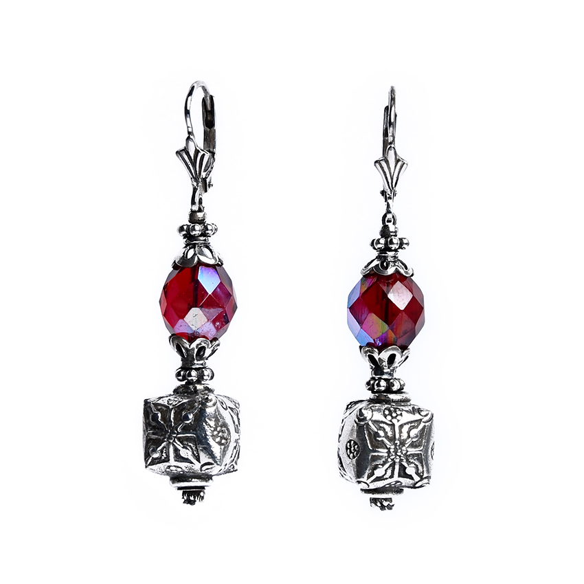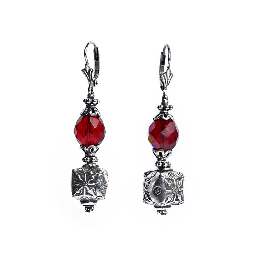 Material: Chinesische facettierte rote Kristallsteine mit Regenbogenschimmer, Sterlingsilber.